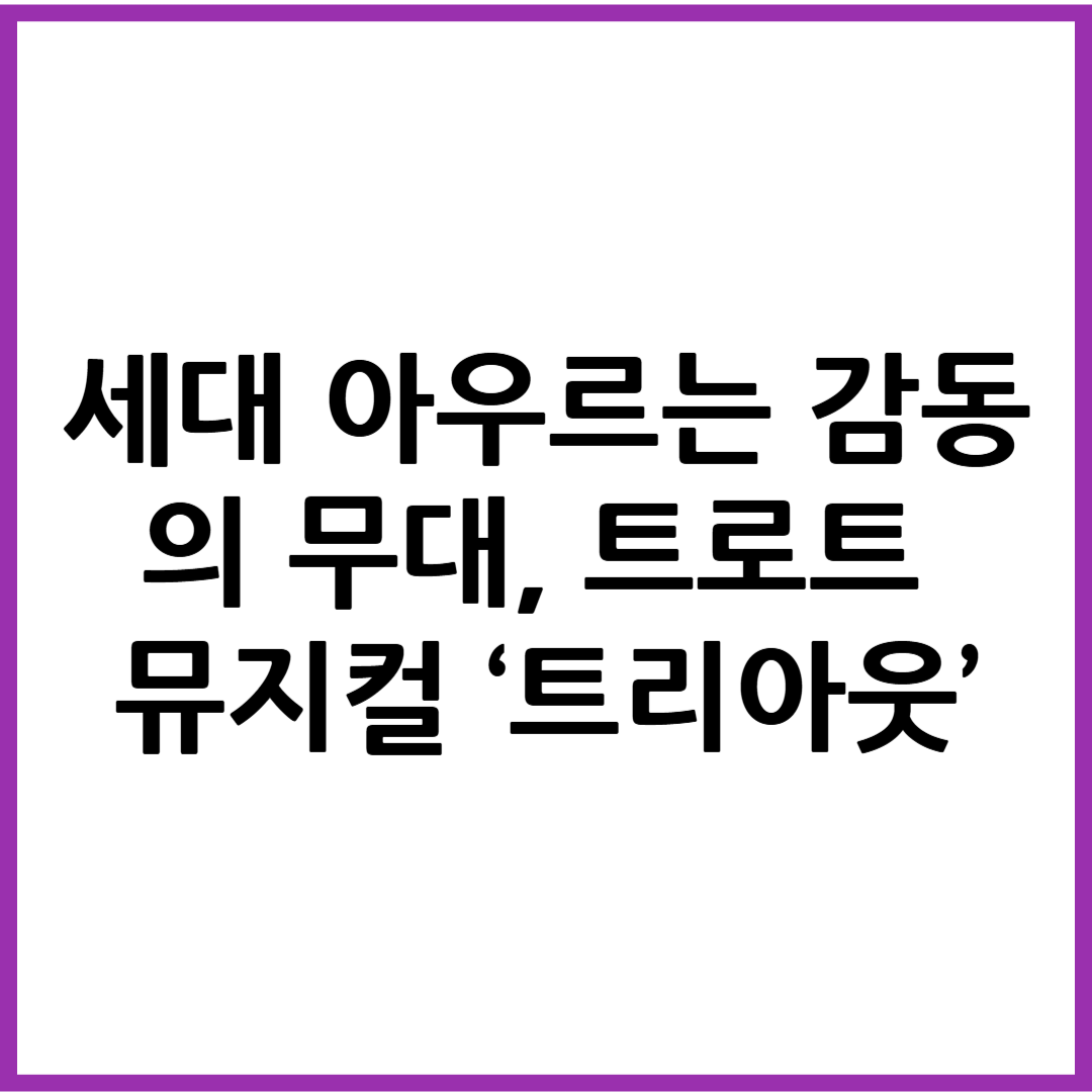 이 작품은 단순히 음악과 연기를 결합한 무대를 넘어, 세대 간의 공감과 화합, 그리고 우리 삶의 희로애락을 진정성 있게 담아내며 관객들에게 깊은 인상을 남기고 있습니다. 이번 글에서는 트로트 뮤지컬 ‘트리아웃’의 개요부터 출연진, 스토리라인, 관람 포인트, 그리고 대중적 반응까지 자세히 소개해드리겠습니다.